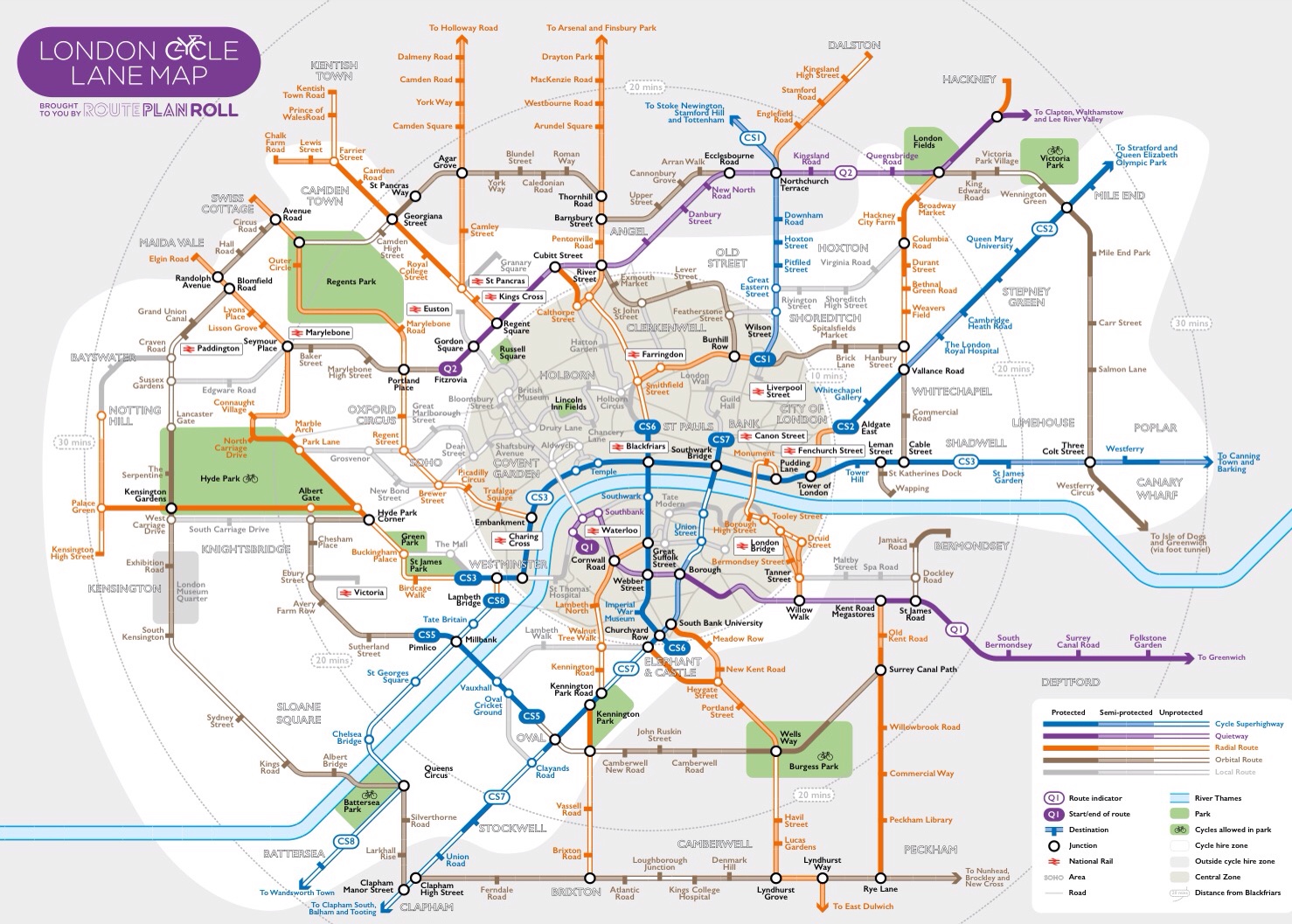 • Rotherhithe to Peckham – 4km route to connect with connect other cycling routes such as Quietway 1 and the proposed Cycle Superhighway 4.