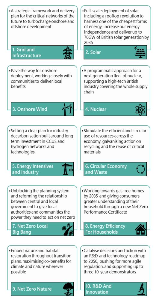 “Local and regional Reform the local planning system and the National Planning Policy Framework now. Have a clearer vision on net zero with the intention to introduce a net zero test, give clarity on when local areas can exceed national standards, give guidance on LAEP, encourage greater use of spatial planning and the creation of Net Zero Neighbourhood plans, and set out a framework for community benefits.”